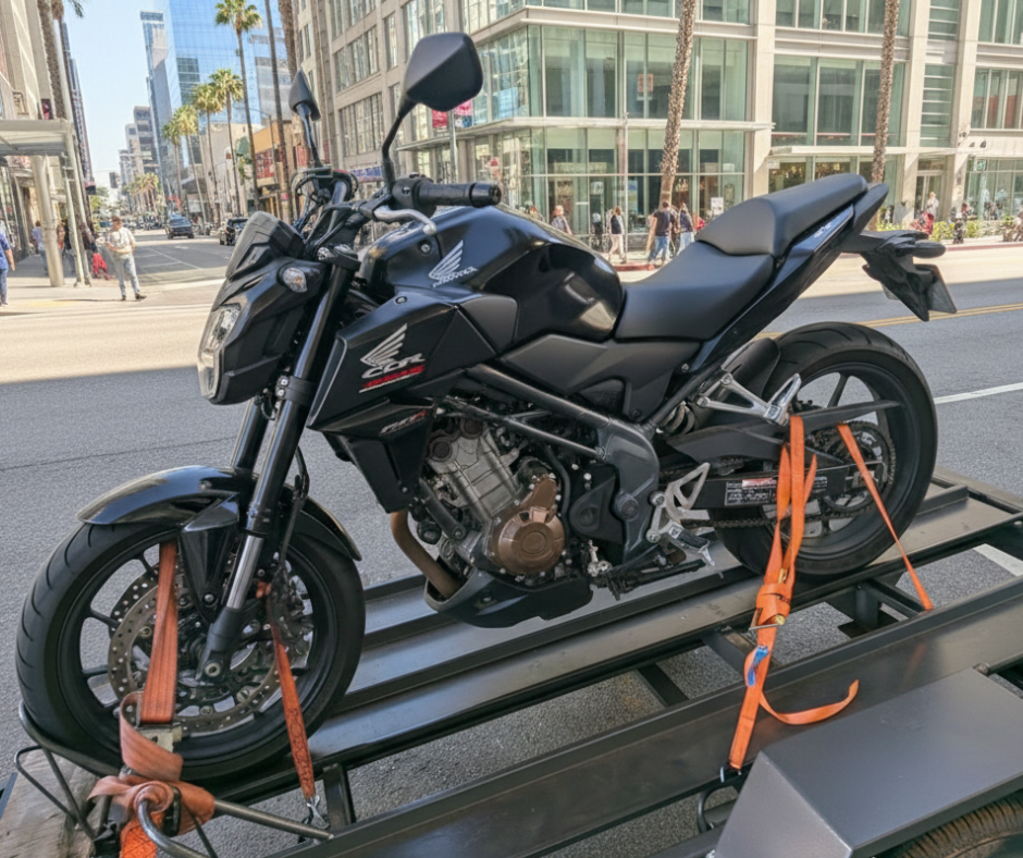 Reboque seguro para sua motocicleta, com transporte adequado e total proteção durante todo o trajeto.