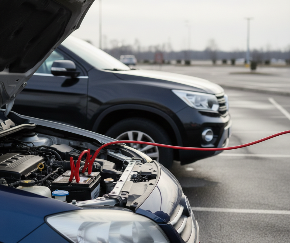 Assistência imediata para bateria descarregada, com solução prática diretamente no local do atendimento.